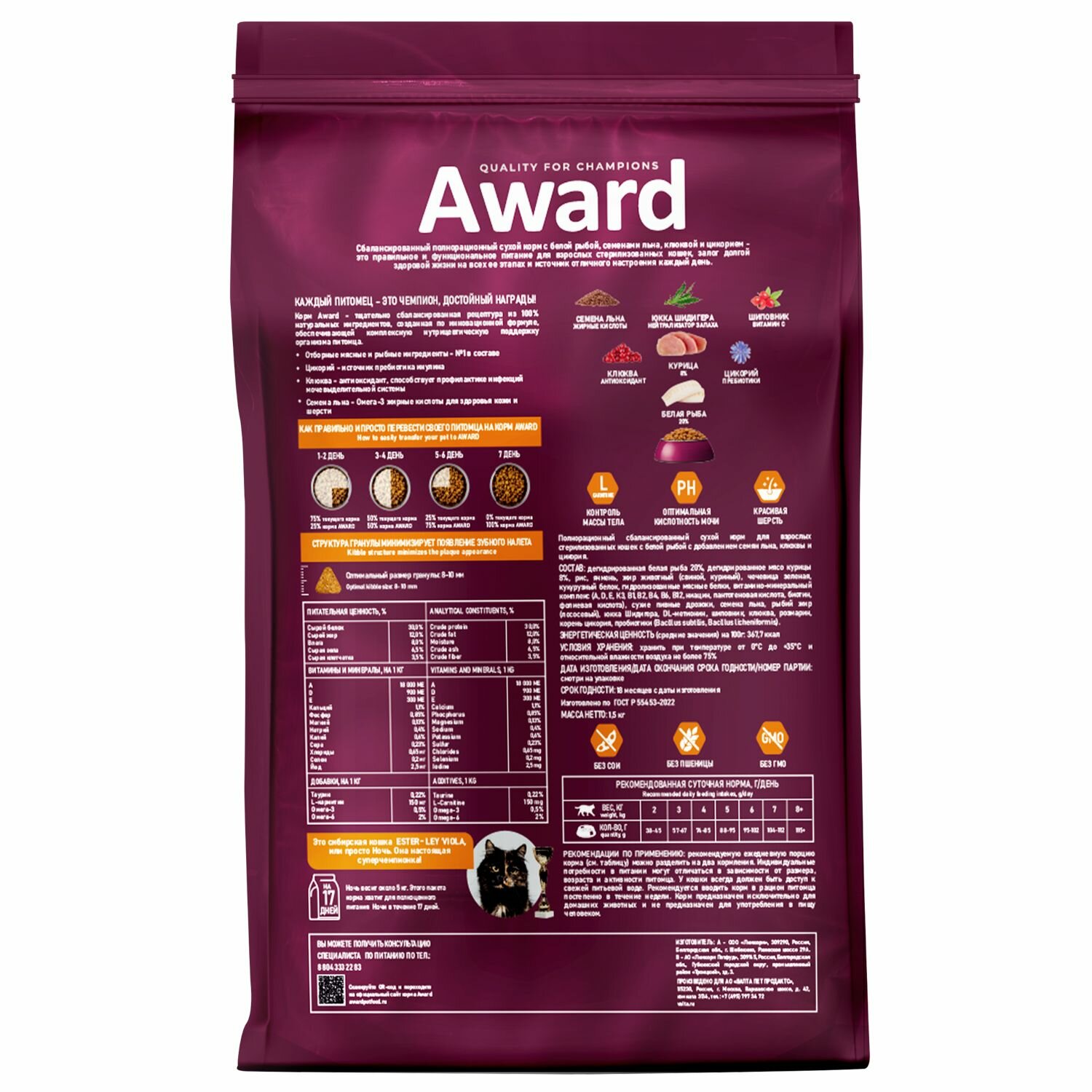 Сухой корм 1.5 кг с белой рыбой AWARD "Sterilized" для стерилизованных кошек, 1 упаковка