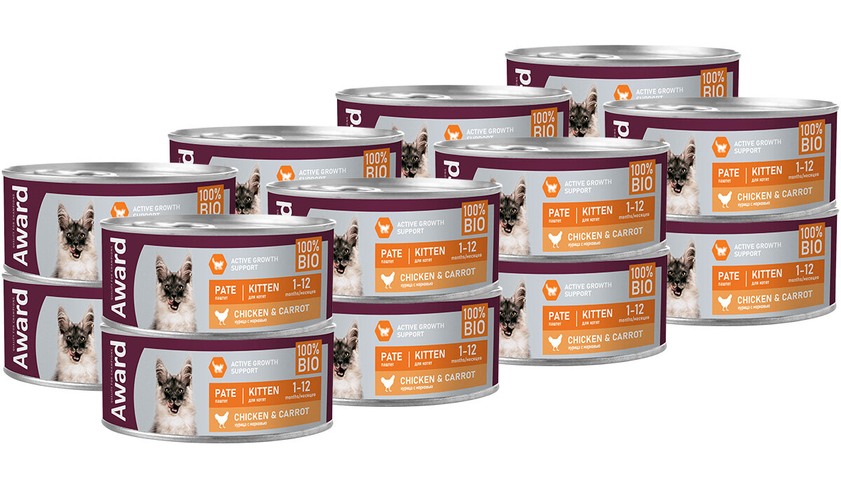 Купить Влажный корм AWARD для котят, паштет из курицы с морковью (16шт х 100г)