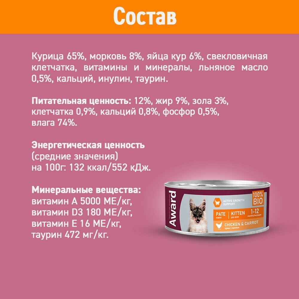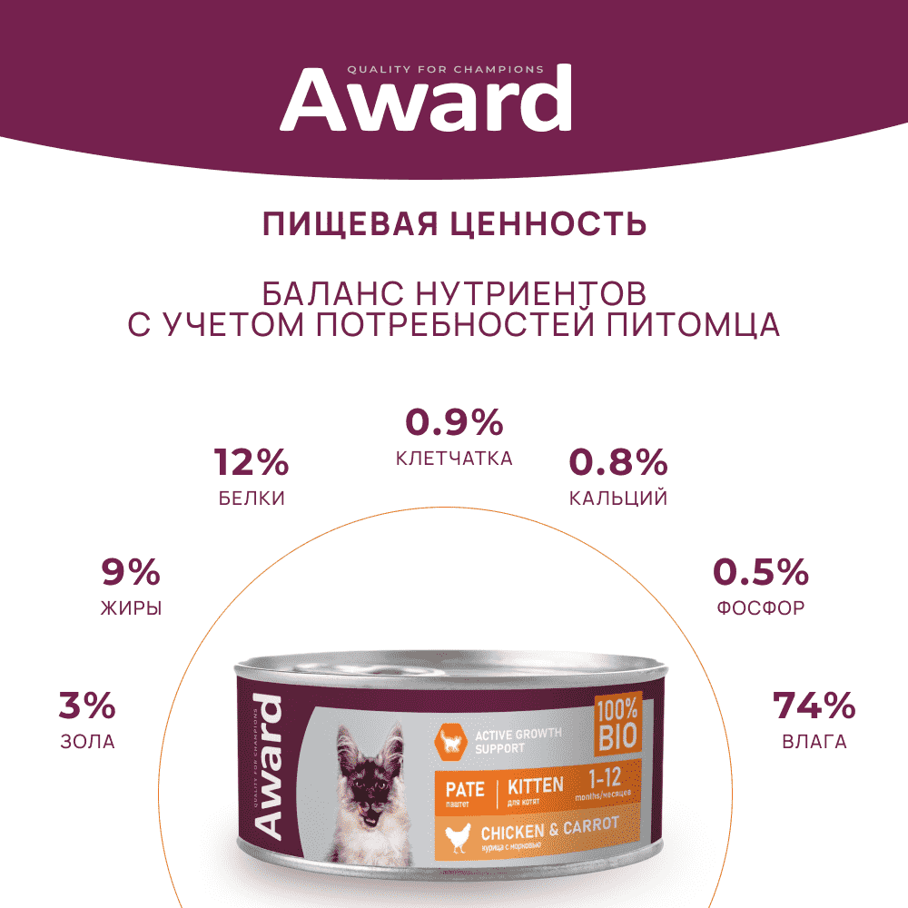 AWARD Kitten Корм влаж. паштет из курицы с морковью д/котят конс.100г