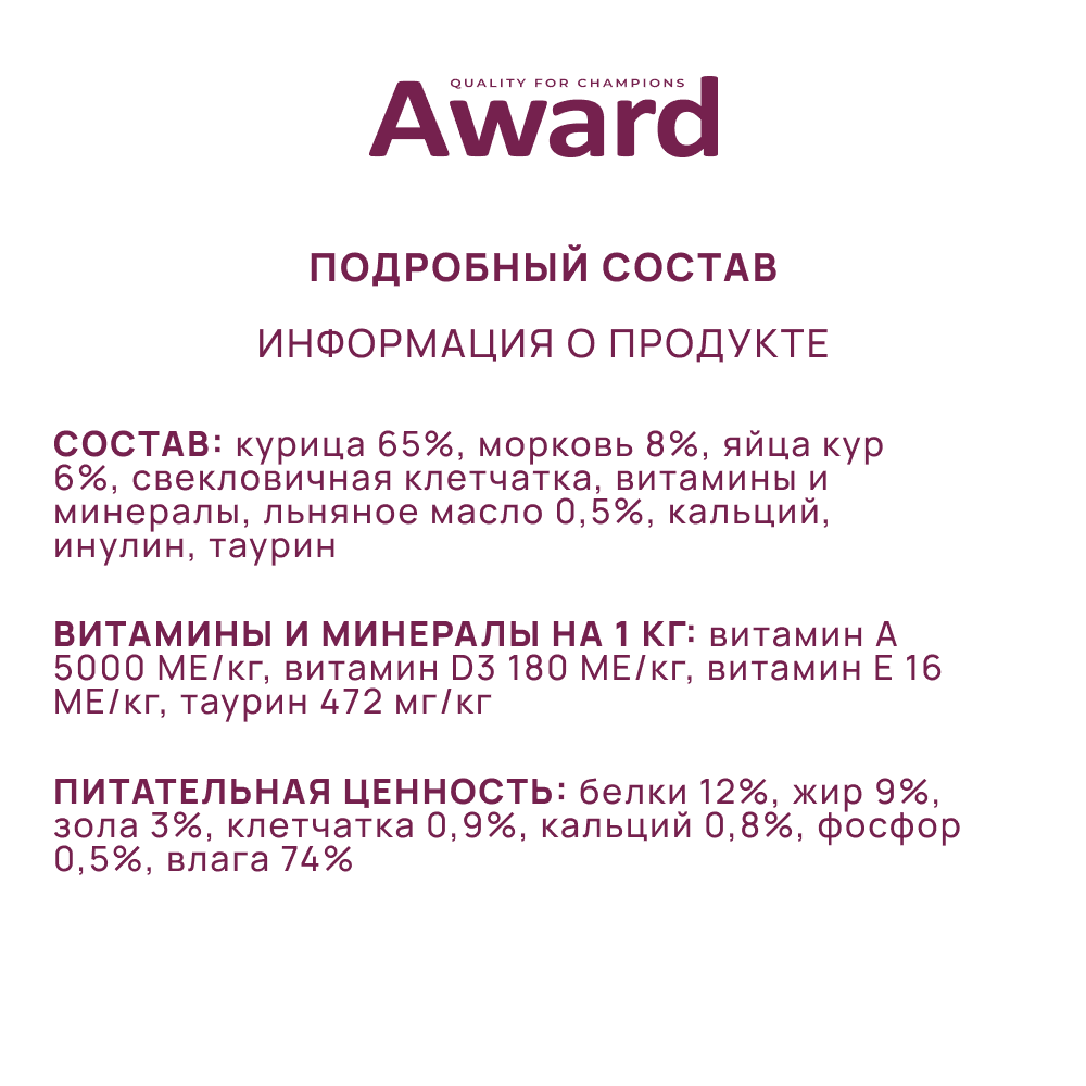 Ниже Вы можете прочитать отзывы на Влажный корм AWARD для котят, паштет из курицы с морковью (16шт х 100г), ознакомится с подробными характеристиками, посмотреть интересные обзоры и фотографии на Влажный корм AWARD для котят, паштет из курицы с морковью (16шт х 100г).