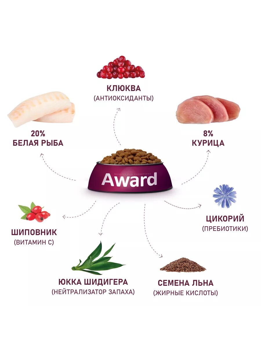 Сухой корм AWARD Sterilized для взрослых стерилизованных кошек с белой рыбой с добавлением семян льна, клюквы и цикория 1.5кг