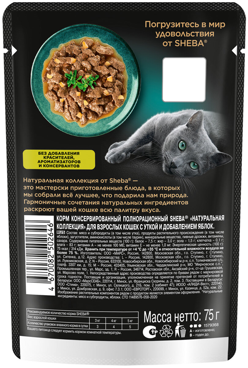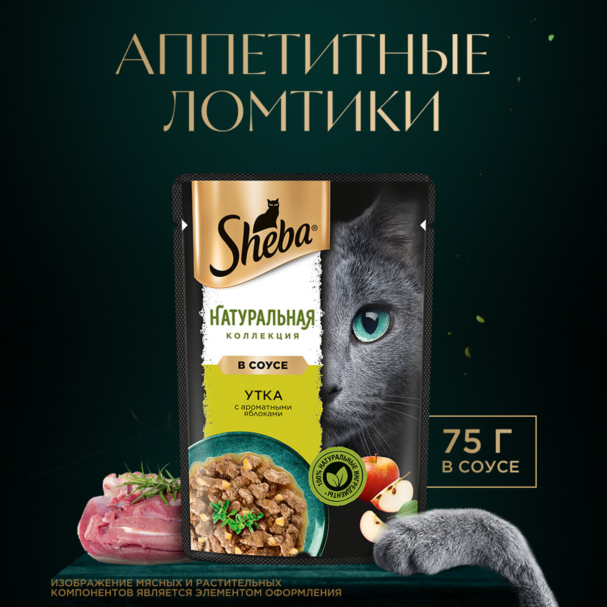 Купить SHEBA натуральная коллекция для взрослых кошек с уткой и яблоками в соусе пауч 75 гр х 10 шт