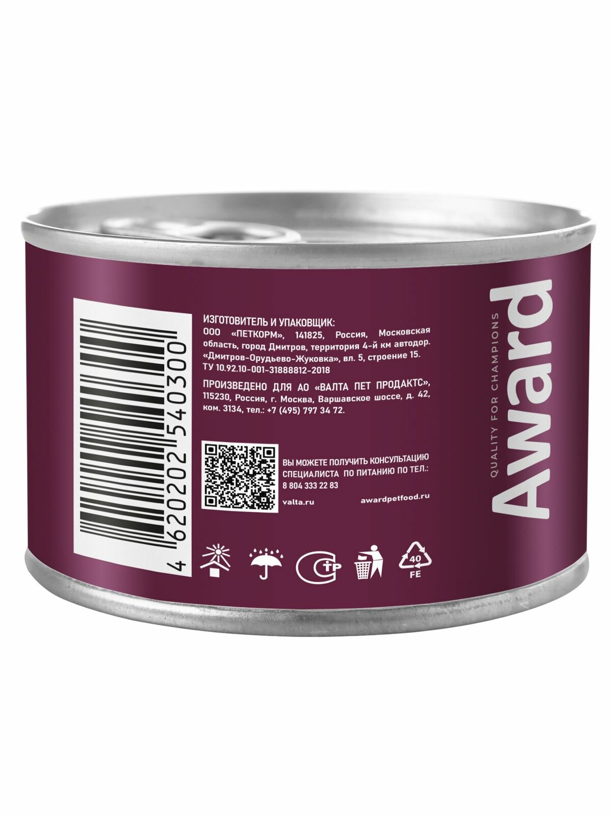 AWARD Паштет AWARD для взрослых собак из утки с брусникой 200г 2540348 2540348 0,200 кг 66720 (2 шт)