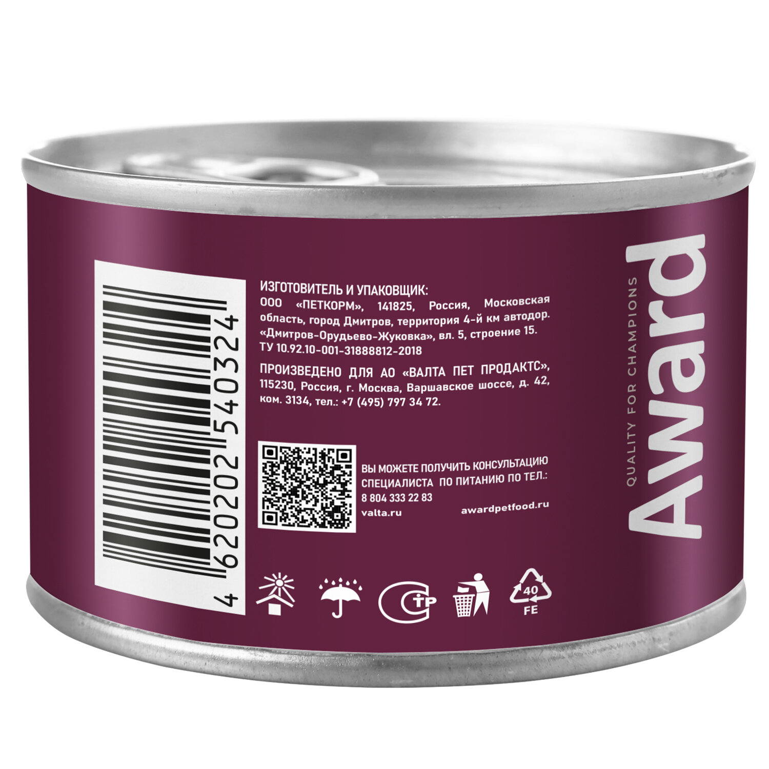 AWARD Паштет AWARD для взрослых собак из утки с брусникой 200г 2540348 2540348 0,200 кг 66720 (2 шт)