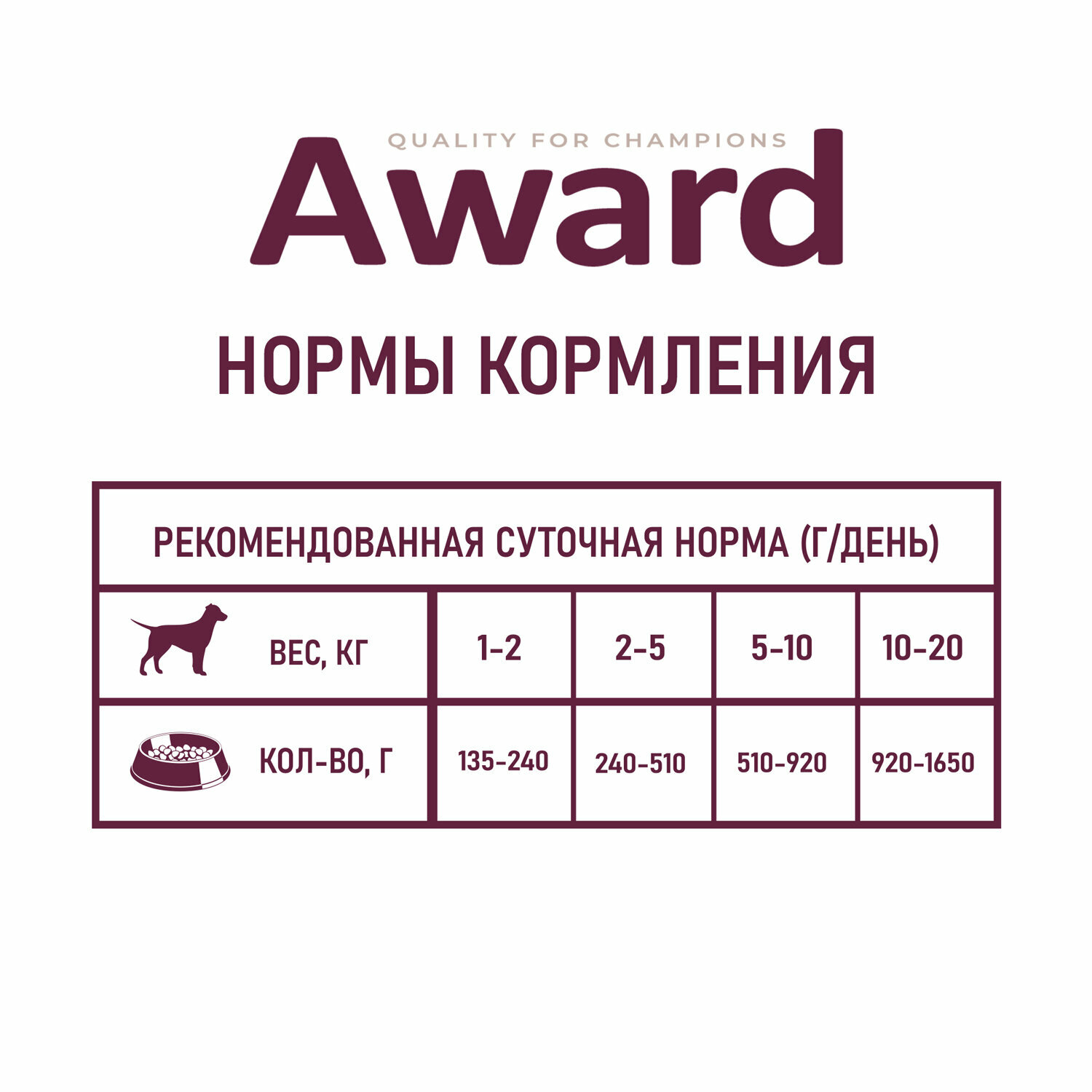 AWARD ADULT SMALL для взрослых собак маленьких пород с ягненком и индейкой 0,8 кг