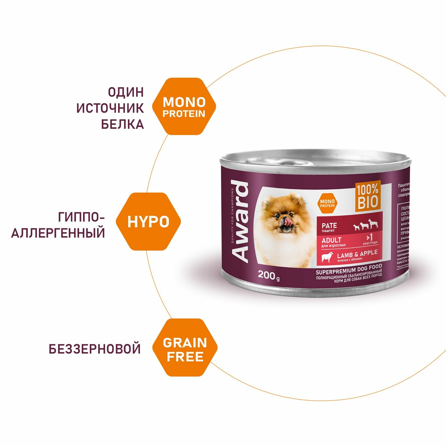 AWARD LAMB & APPLE монопротеиновые для взрослых собак всех пород паштет ягненком и яблоком банка 200 гр х 12 шт