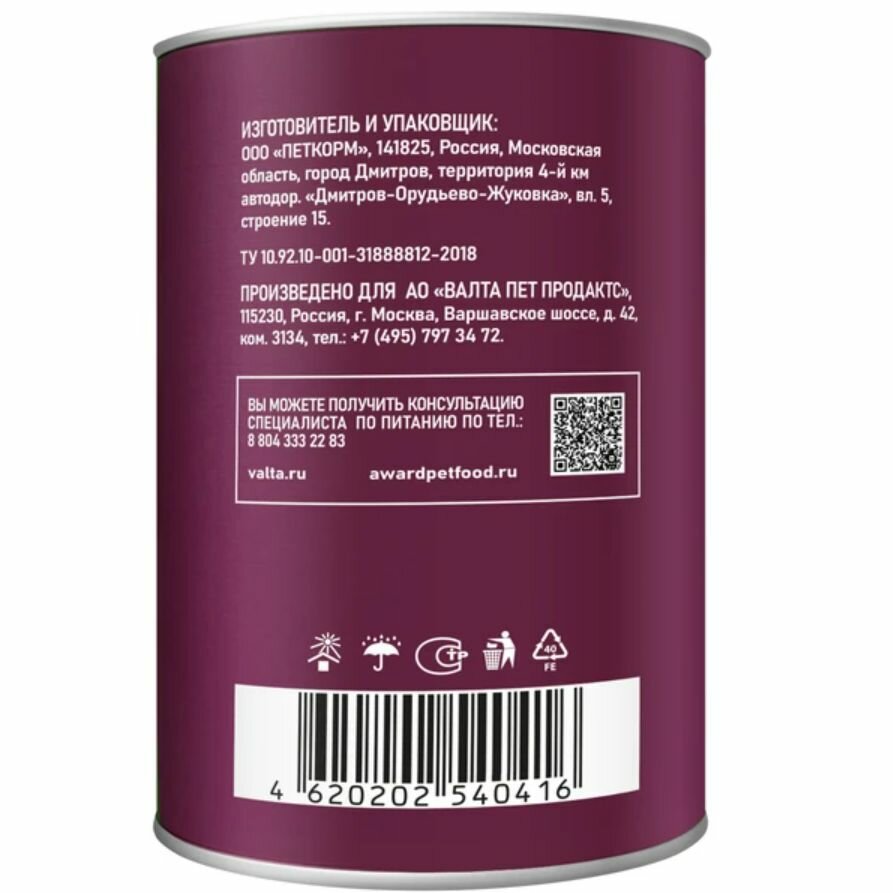 AWARD Паштет AWARD для взрослых собак из утки с брусникой 200г 2540348 2540348 0,200 кг 66720 (2 шт)