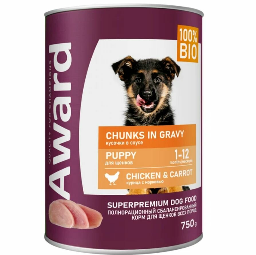 Влажный корм AWARD для щенков кусочки с курицей и морковью 750г * 12 шт