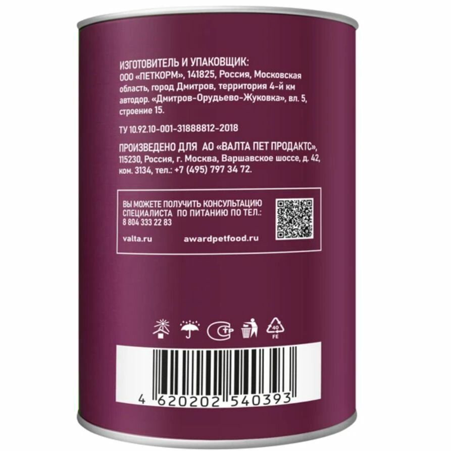 Влажный корм для собак AWARD, паштет из индейки с черникой, 4 шт. х 400 г