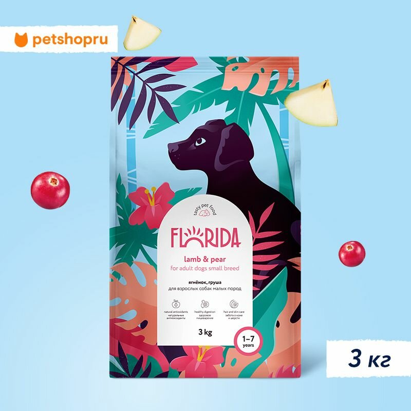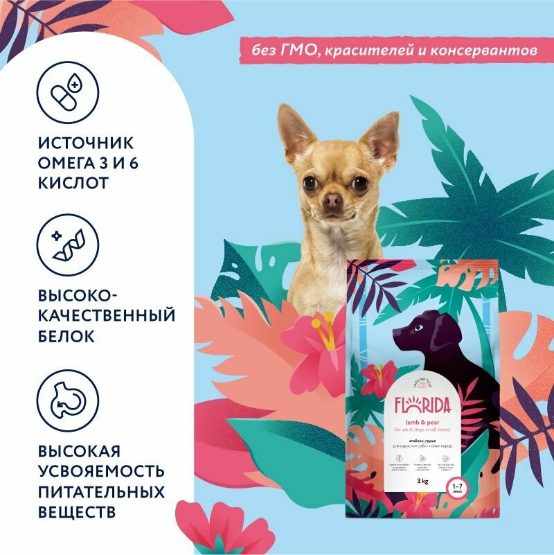 Сухой корм для собак малых пород Florida ягненок, груша, 3 кг
