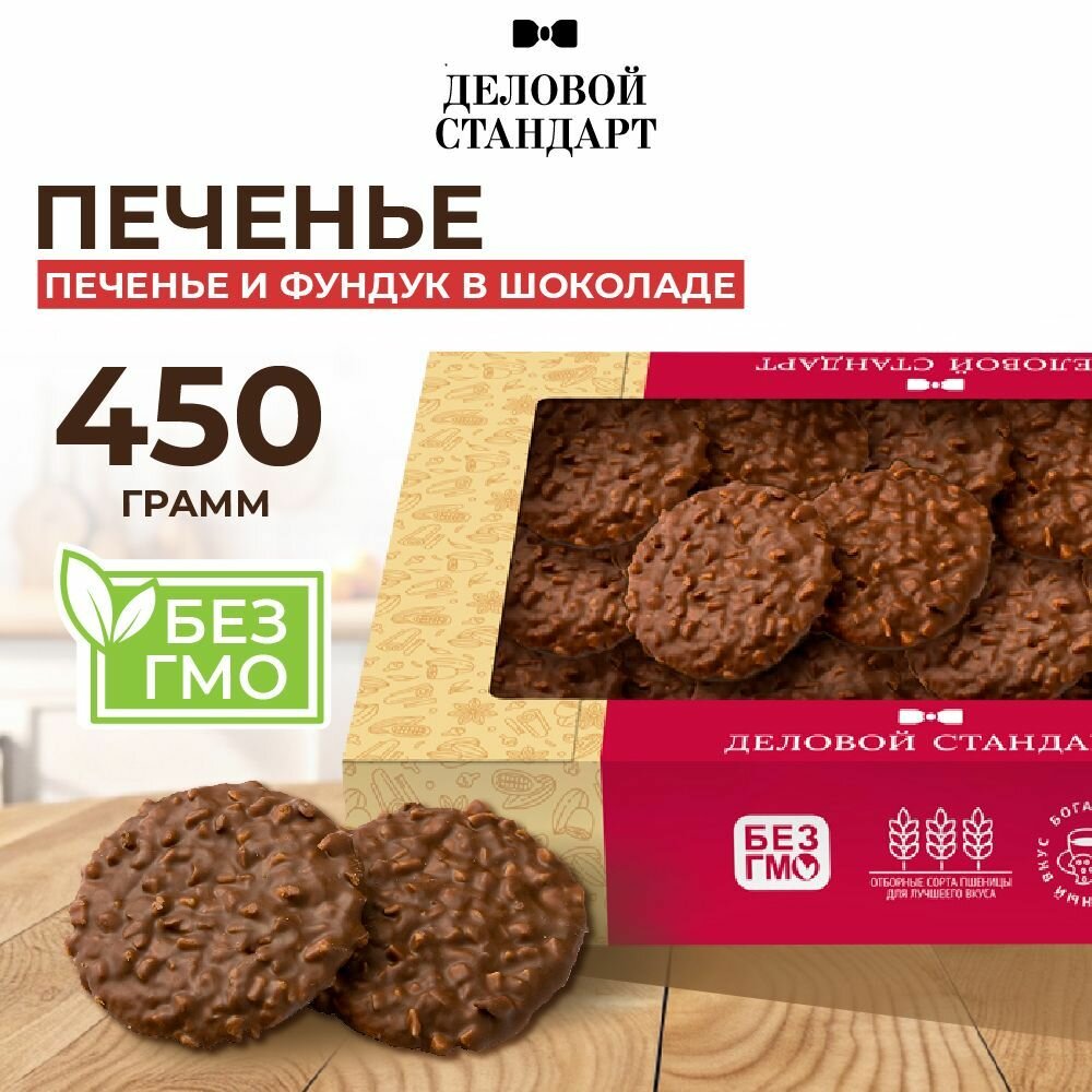 Купить Печенье сдобное Деловой Стандарт, Печенье и фундук в шоколаде, 450 г