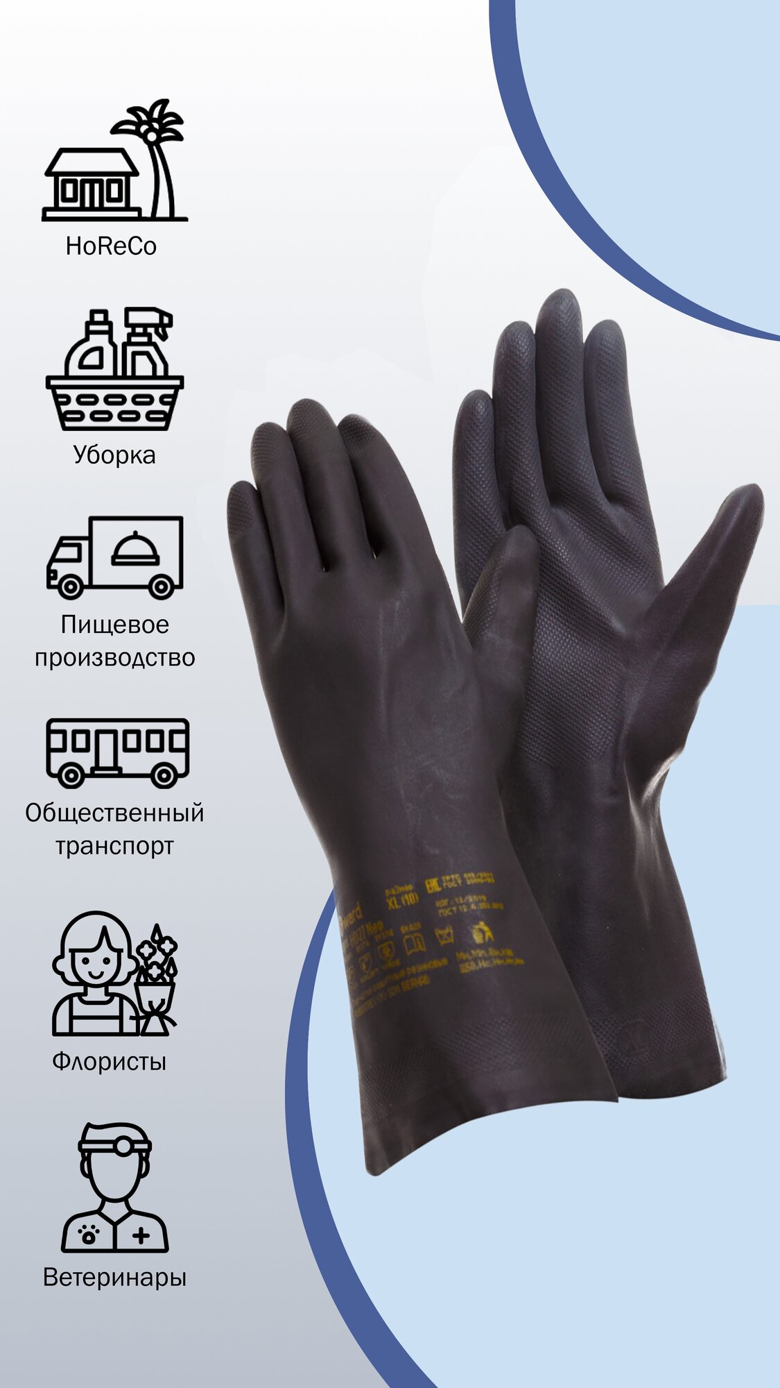 Перчатки химически стойкие хозяйственные усиленные из латекса и неопрена, удлиненные черные - КЩС, HD27Neo, размер 10 (XL)