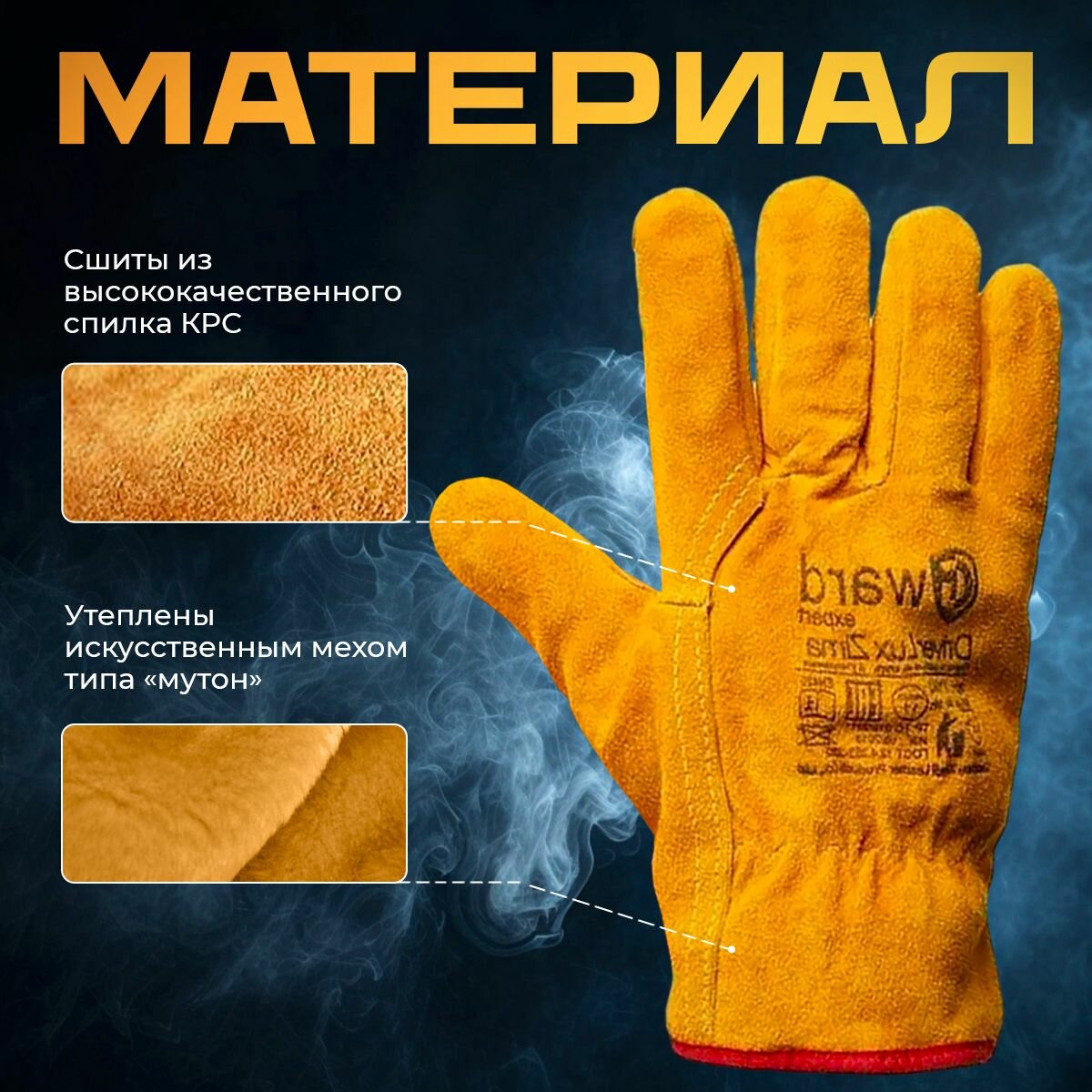 Перчатки из спилка, утеплитель мех-мутон, перчатки рабочие, краги сварщика Gward Driver Lux Zima, размер 11 (XXL), оранжевого цвета, 1 пара