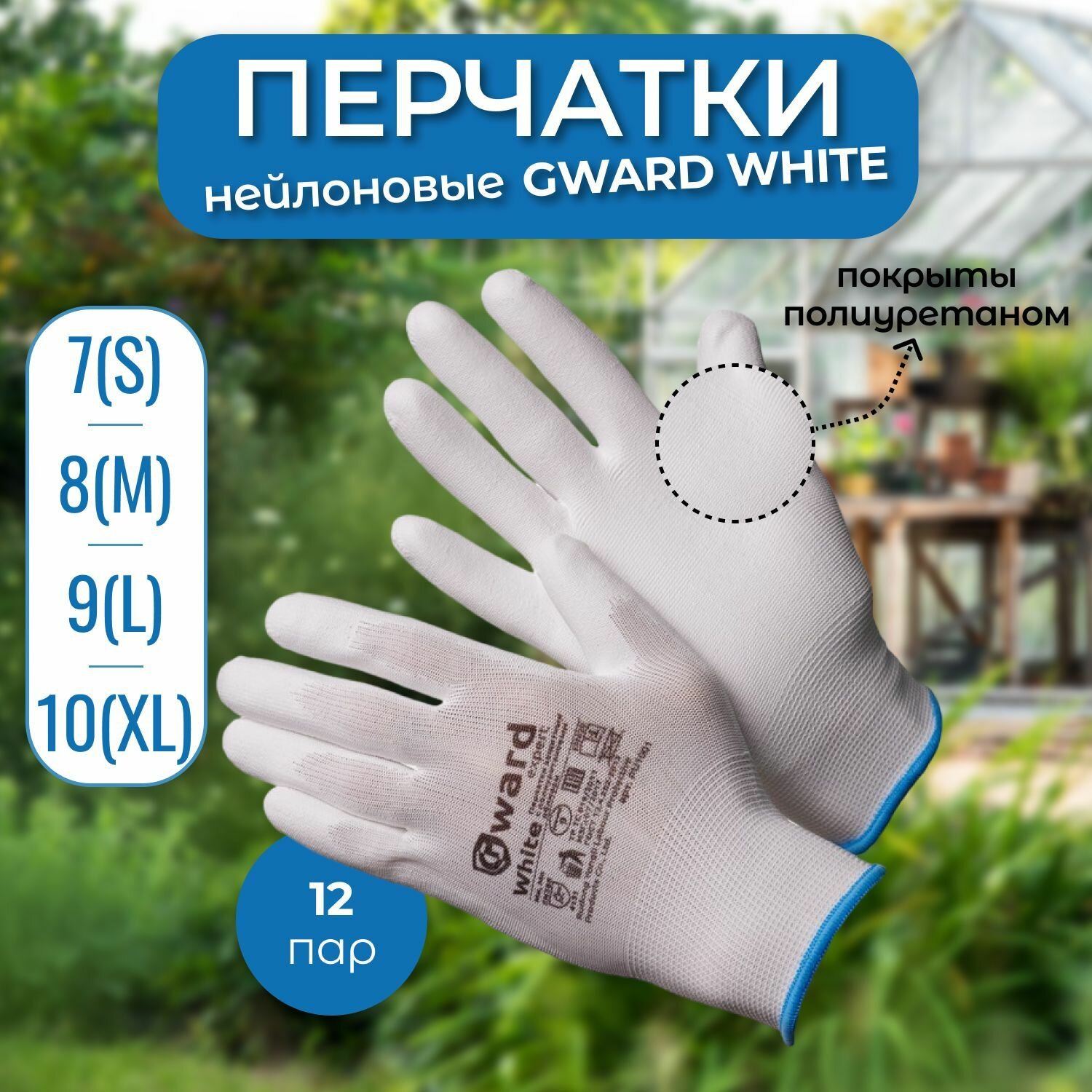 Перчатки нейлоновые с белым полиуретаном Gward White размер 7 S 12 пар