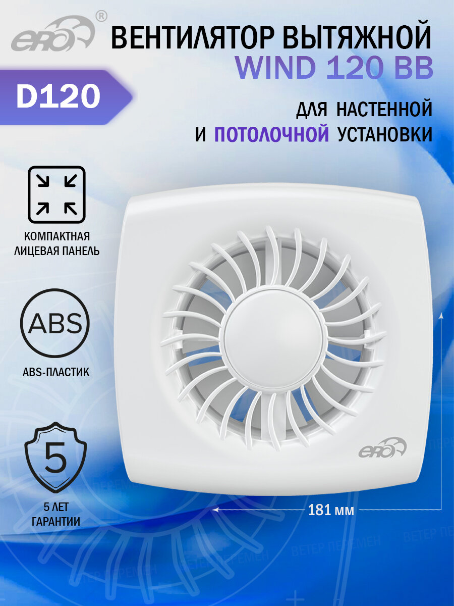 СохранитьВентилятор вытяжной осевой ERA WIND 120 BB, с двигателем на шарикоподшипниках, потолочный, настенный, белый, D 120 мм интересное:
