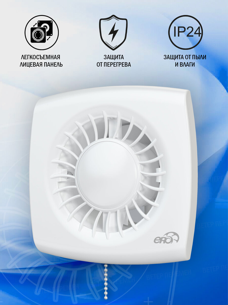 Купить Вентилятор вытяжной осевой ERA WIND 120-02, с тяговым выключателем-цепочкой, настенный, белый, D 120 мм