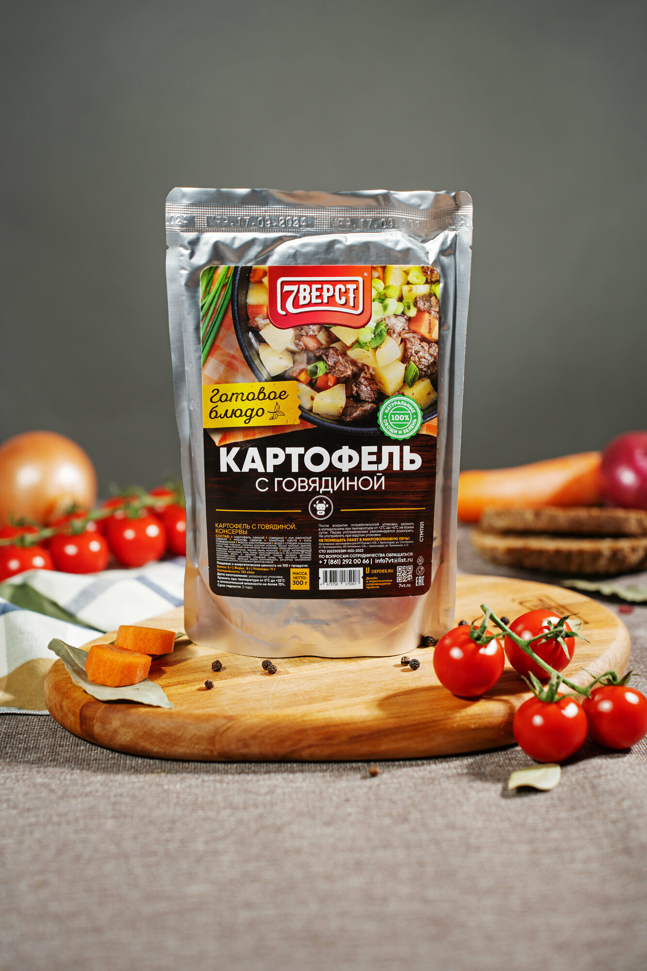 7 вёрст Картофель с говядиной. Готовая еда в реторт-пакете. Консервы натуральные. 1 уп.300 г