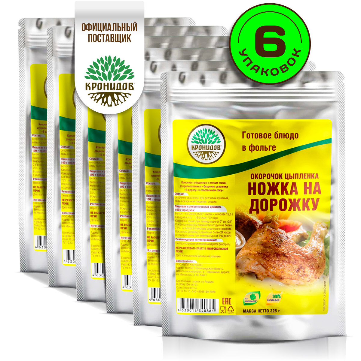 Купить Кронидов Окорочок цыпленка "Ножка на дорожку" Готовое блюдо в реторт-пакете Консервы натуральные Набор 6 шт. по 325 г