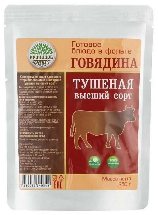 Туристическое питание Кронидов Говядина тушеная Богатырская, В/С Каскад 250 гр. интересное: