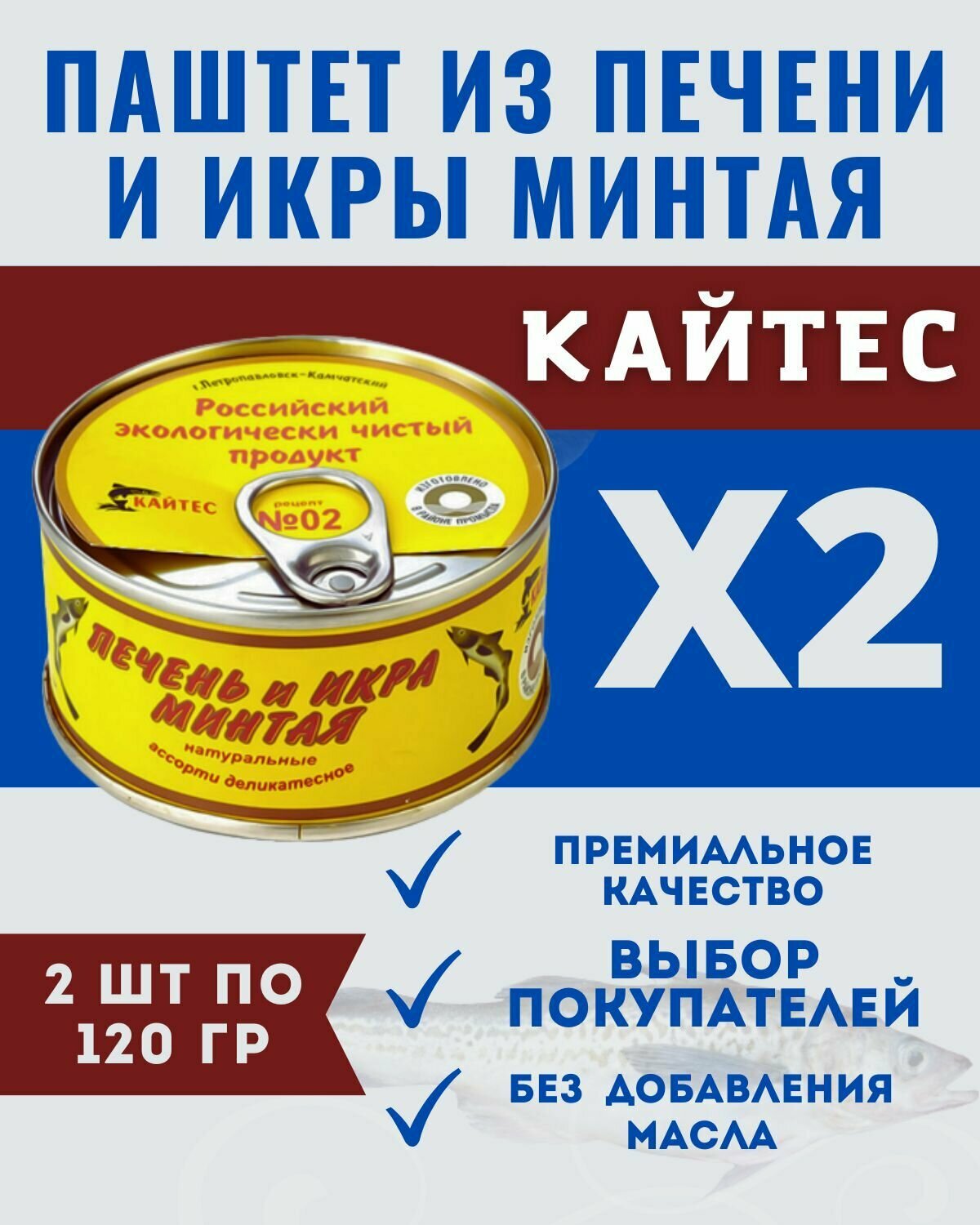 Паштет из печени и икры минтая / кайтес / 2 шт. по 120 гр.