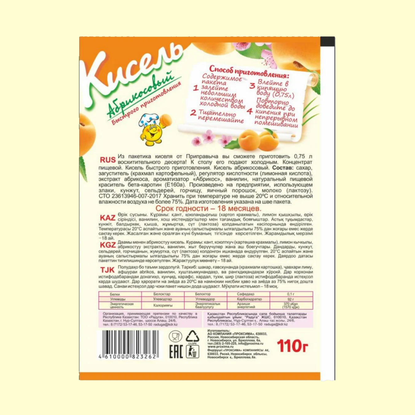 Кисель "Приправыч" быстрого приготовления с абрикосом, 110 гр. (упаковка 25 шт).