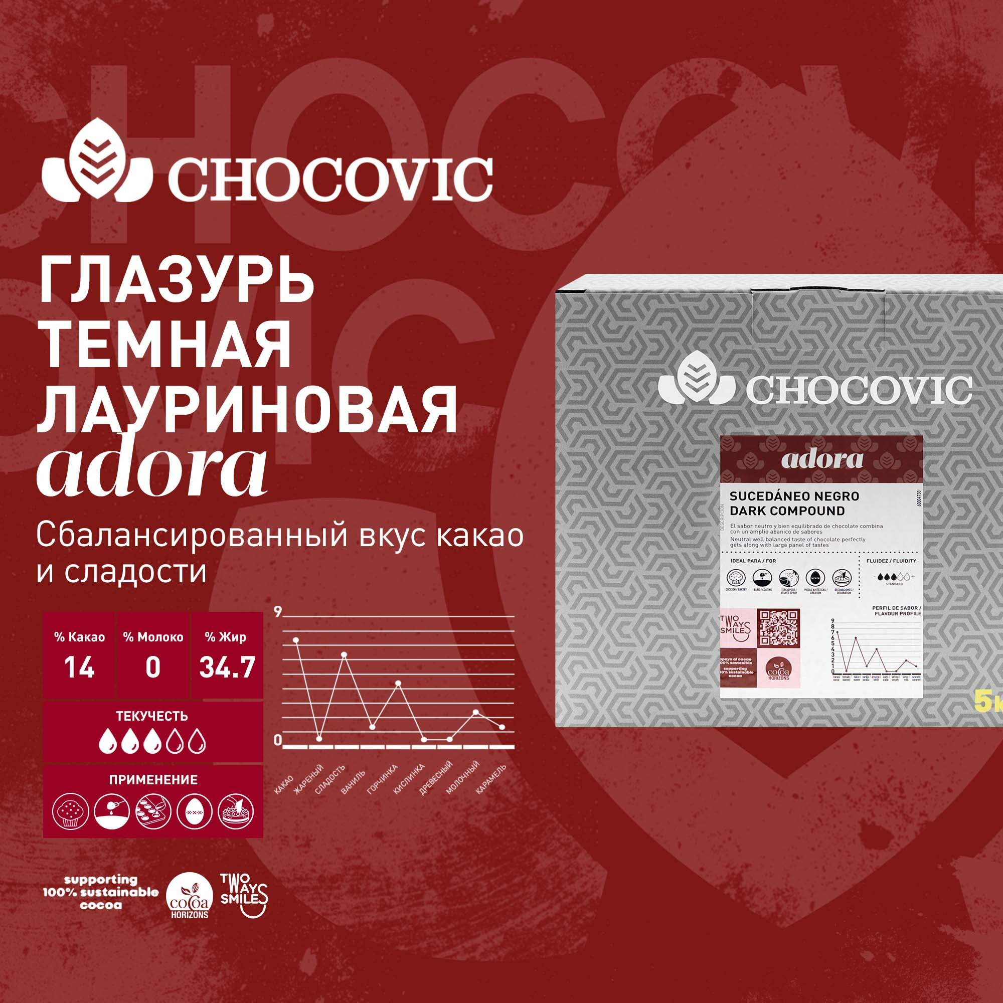 Купить Глазурь темная лауриновая для покрытий Adora Chocovic (Чоковик) 5 кг