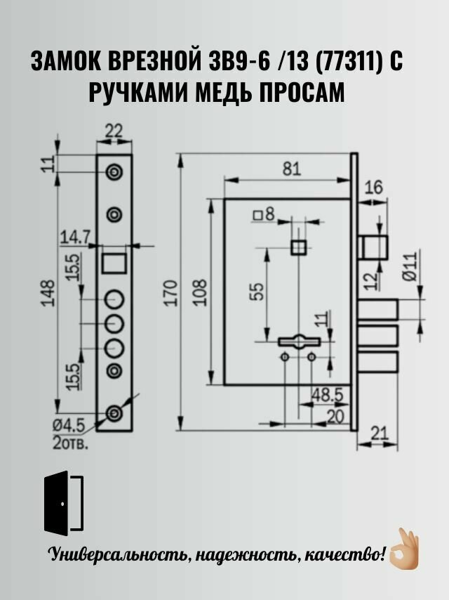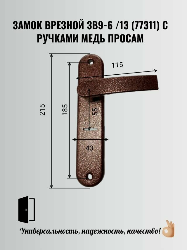 Врезной замок ПроСам ЗВ9-6/13 (77311) медный антик интересное: