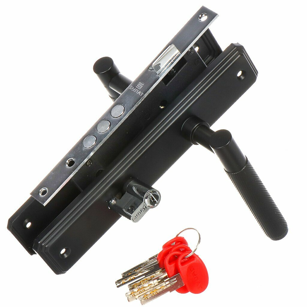 Замок врезной с ручками булат ЗВ4-3.70.02.02 ферона черный, 5 ключей