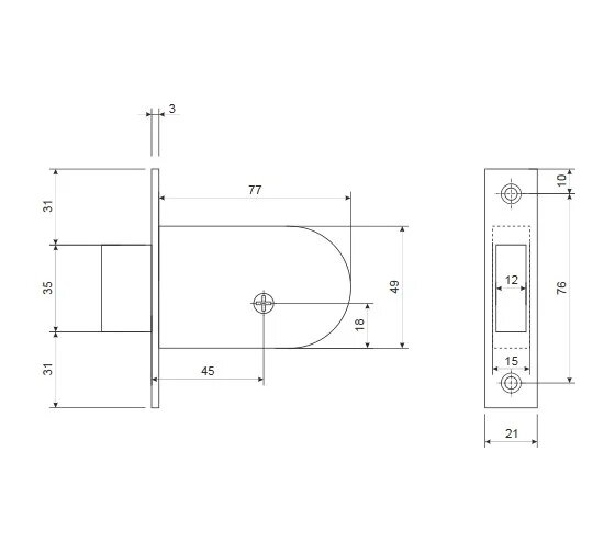 Замок врезной магнитный 25М-85 мм, чёрный Нора-М 18525