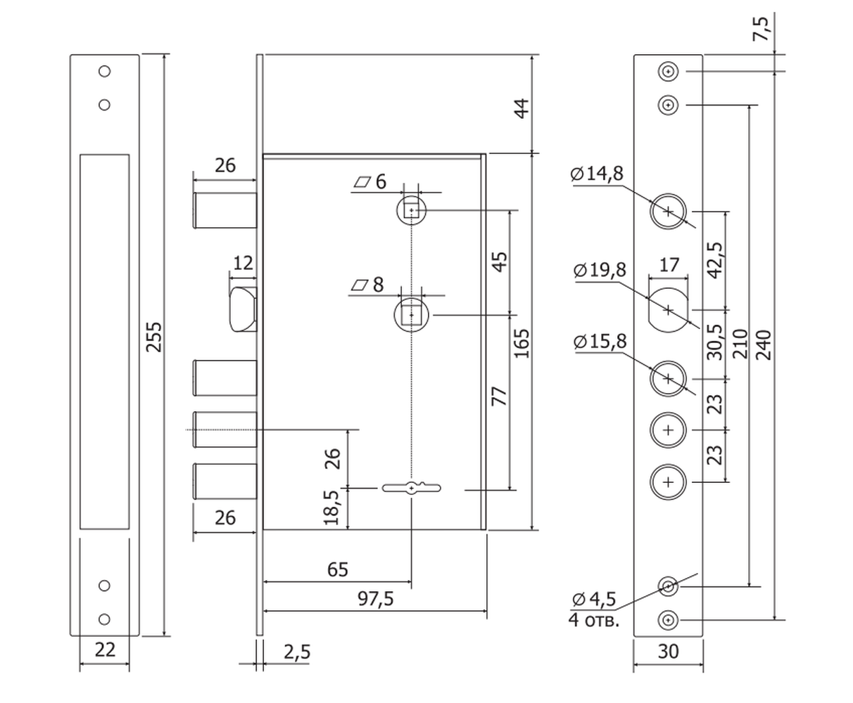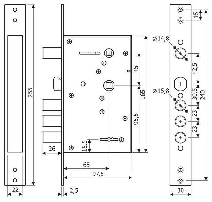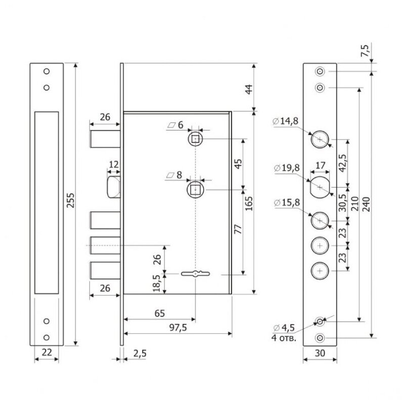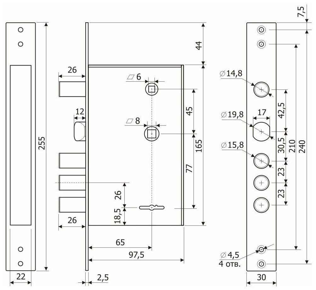 | Дополнительная информация | Тип упаковки Коробка Назначение Общее Рекомендован для установки в входные двери Да Рекомендован для установки в межкомнатные двери Нет Тип крепления Лицевая планка Тип ригелей Цилиндрические Количество ригелей 3 Вылет ригелей 26 мм Диаметр ригеля 15.8 мм Удаление ключевого отверстия (Backset) 65 мм Тип механизма секретности Сувальдный с двойной бородкой Количество ключей 4 шт Дополнительный механизм секретности Нет Защелка Классическая Тип защелки Универсальная Межосевое расстояние 77 мм Комплектация ручками Не комплектуется Автоматическое запирание Не автоматическое Количество точек запирания 1 Дополнительное запирание изнутри Да Покрытие лицевой планки Гальваника Цвет лицевой планки Хром Класс по ГОСТ 2 |
