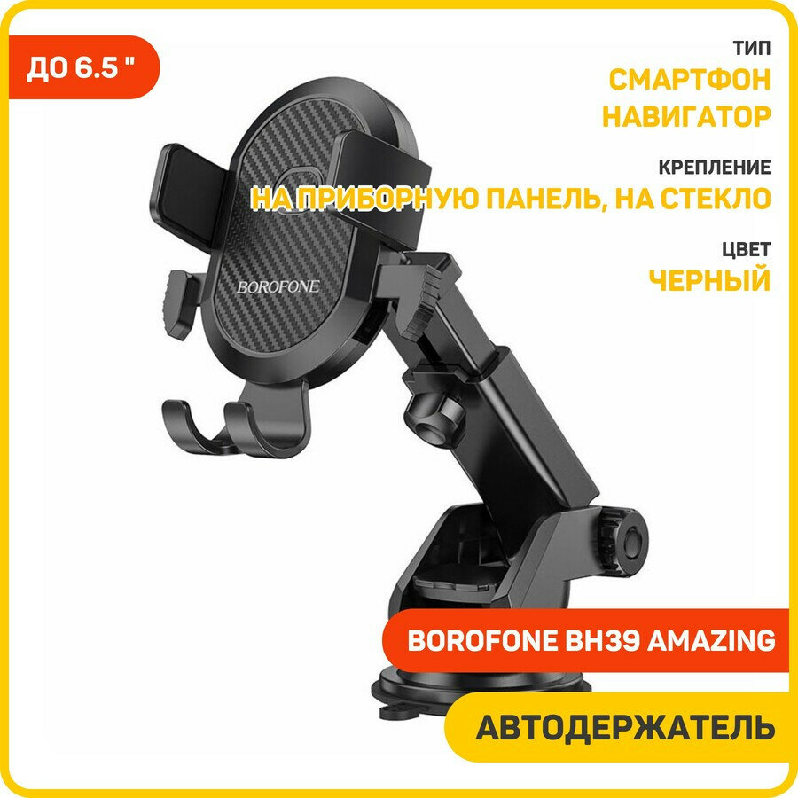 Автомобильный держатель BOROFONE BH39 Amazing, зажимной, на приборная панель/лобовое стекло, черный интересное: