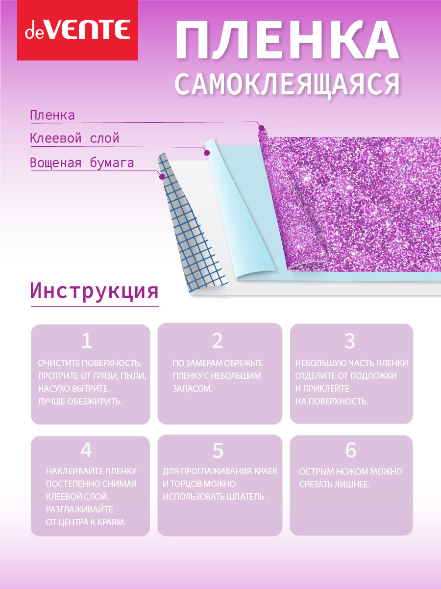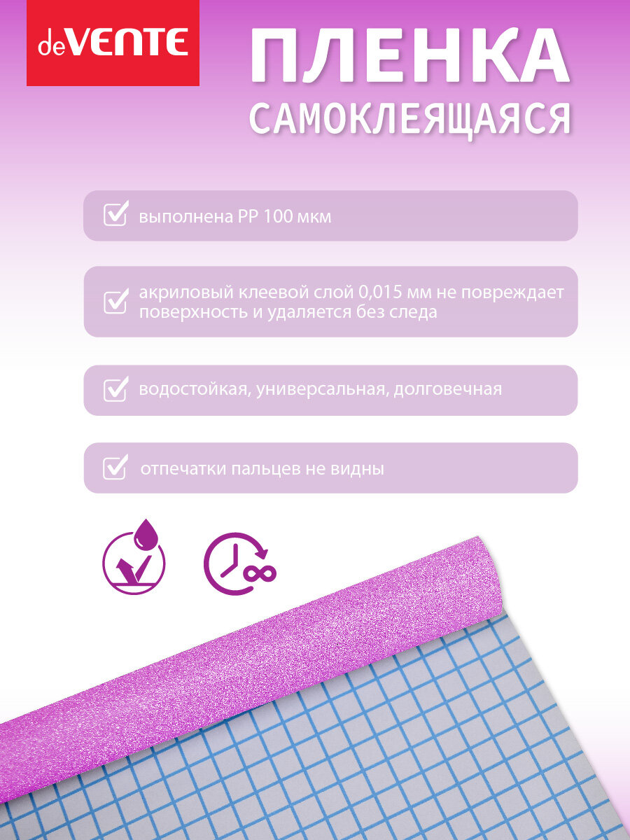 Самоклеящаяся пленка deVENTE С блестками, 45х100 см, розовая, PP 100 мкм, в рулоне