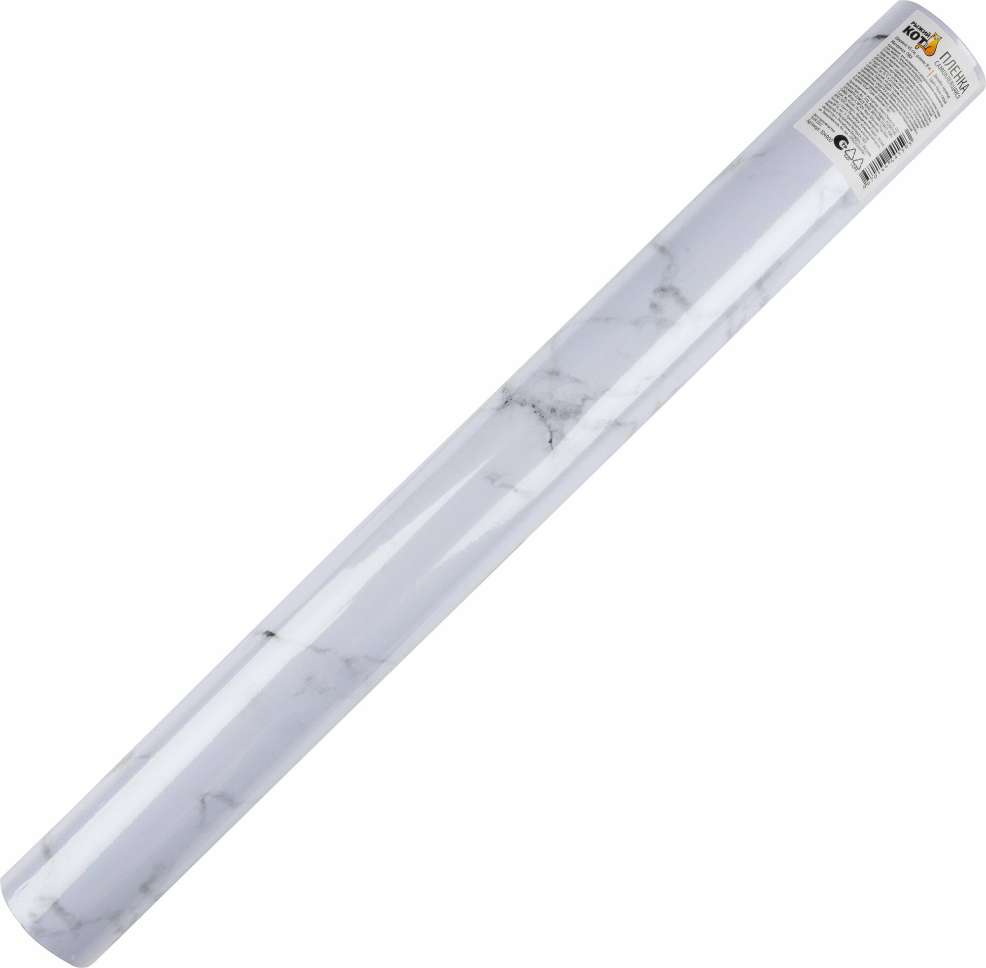 Пленка Рыжий Кот, ПВХ, самоклеящаяся, мраморная, серо-белая, 0.45x8м