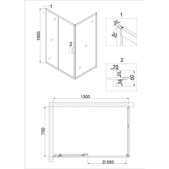 Душевая дверь Niagara 130х190 NG-82-13AB раздвижная, стекло прозрачное, профиль черный интересное: