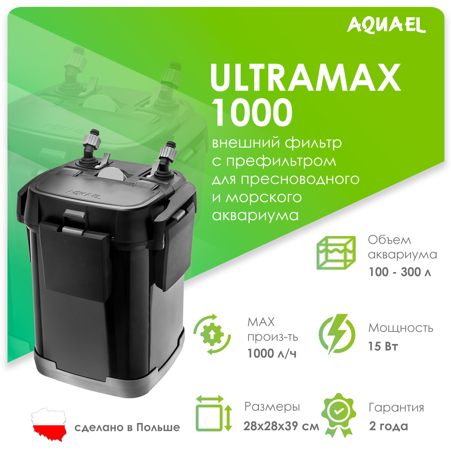 Купить Внешний фильтр для аквариума 100 - 300 л Aquael ULTRAMAX 1000 (1000 л/ч, 15 Вт, h = 190 см)