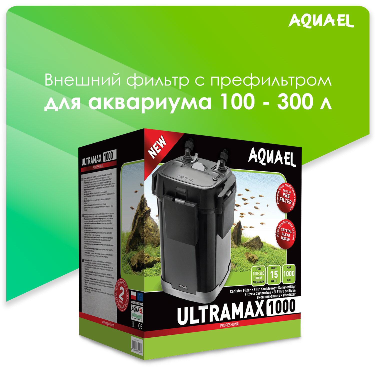 Внешний фильтр AQUAEL ULTRAMAX 1000 для аквариума 100 - 300 л (1000 л/ч, 15 Вт)