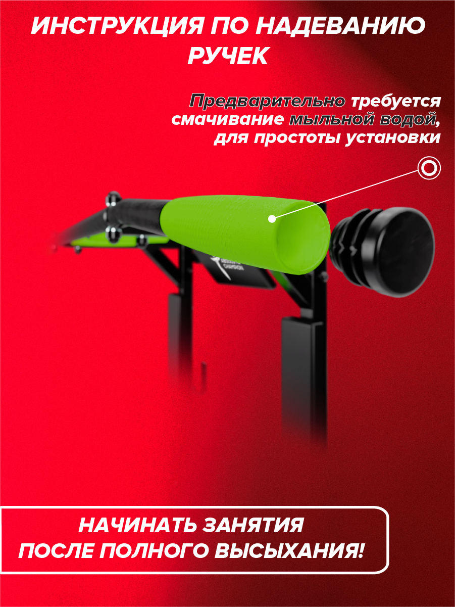 Турник-Брусья атлант с узким хватом черный с салатовыми ручками
