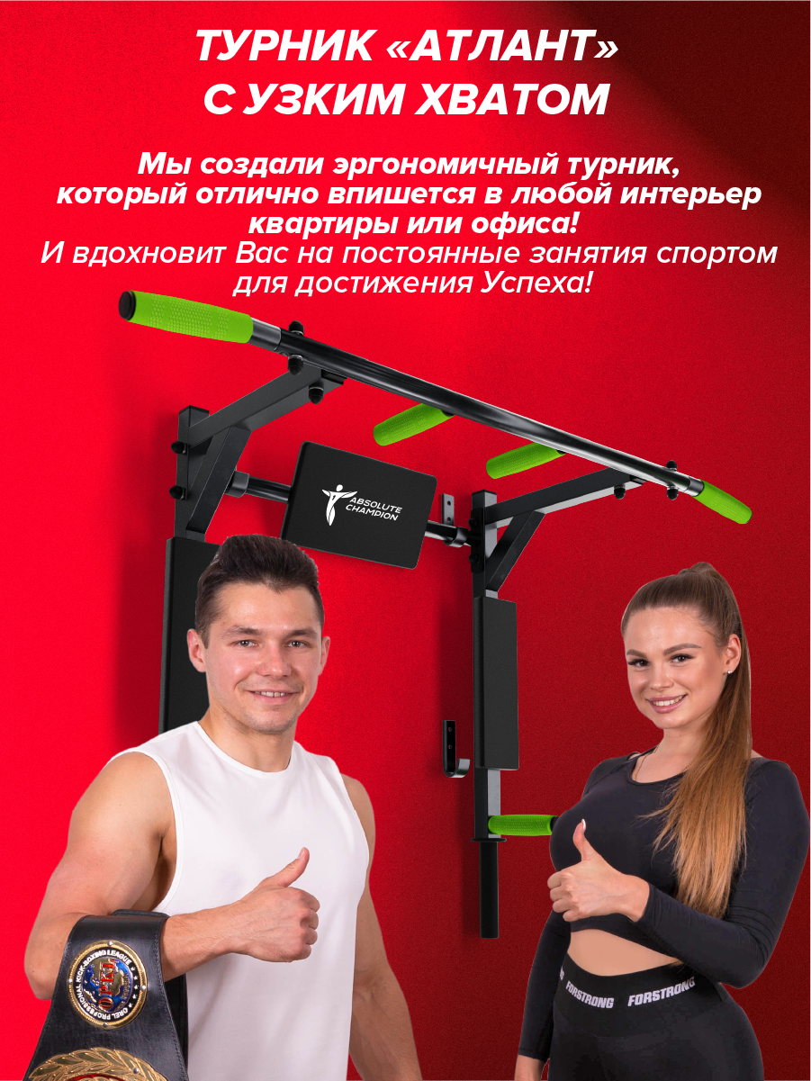 Купить Турник настенный 3 в 1 брусья пресс тренажер для спорта дома, усиленный, нагрузка 300кг атлант с узким хватом черный с салатовыми ручками