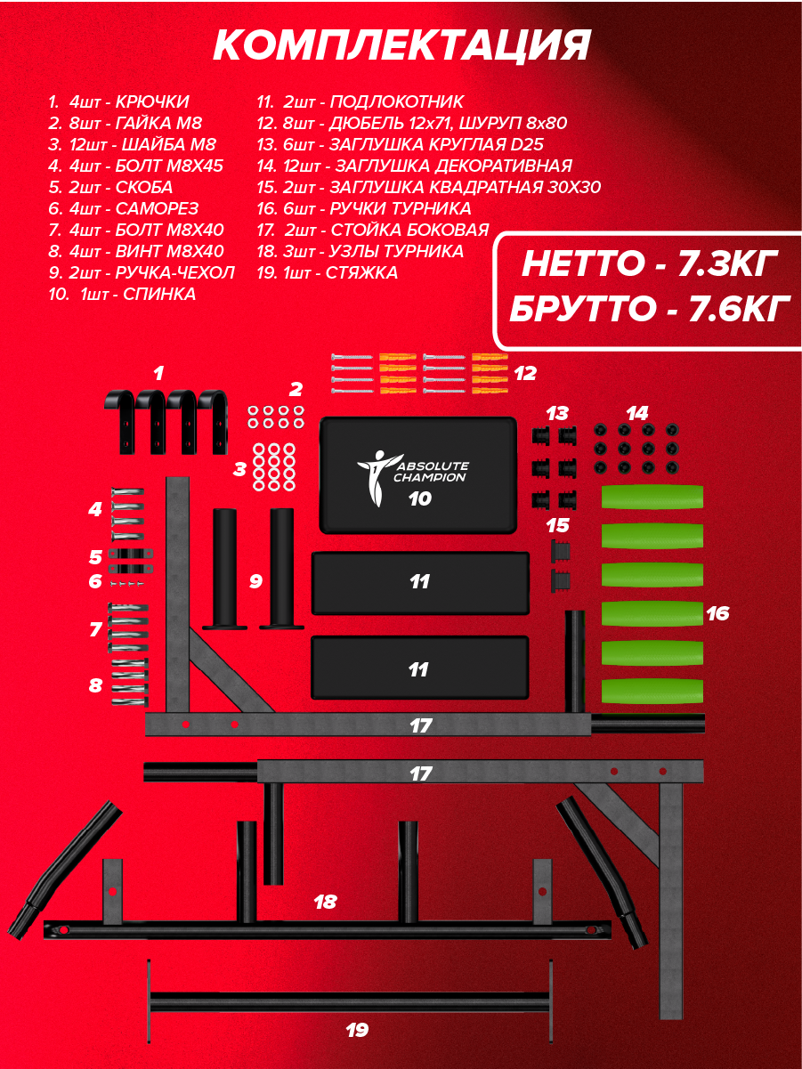 | Дополнительная информация | фитнес; кроссфит; тяжелая атлетика; спортивная гимнастика; турник; турник настенный; турник 3в1; турник-брусья; брусья |