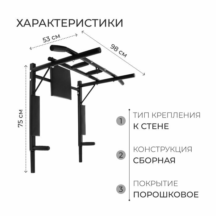 Купить Турник-брусья "Железное тело" 3 в 1, разборный, цвет черный 10324278