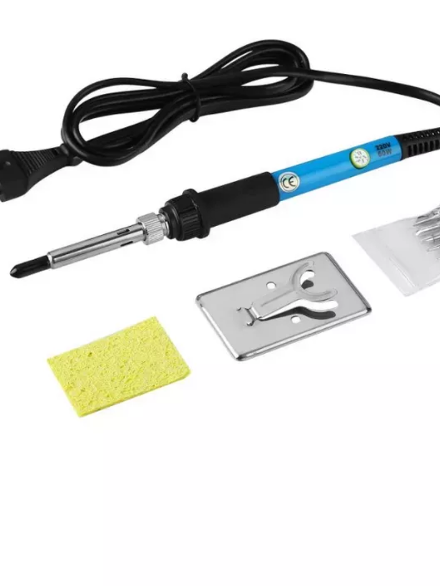 | Комплектация | 1шт. паяльник 1 шт. подставка под паяльник 1 шт. экстрактор припоя 1 шт. сменный наконечник экстрактора припоя 1 шт. канифоль 1 шт. припой спиралью 1 шт. бокорезы 1 шт. тонкогубцы |