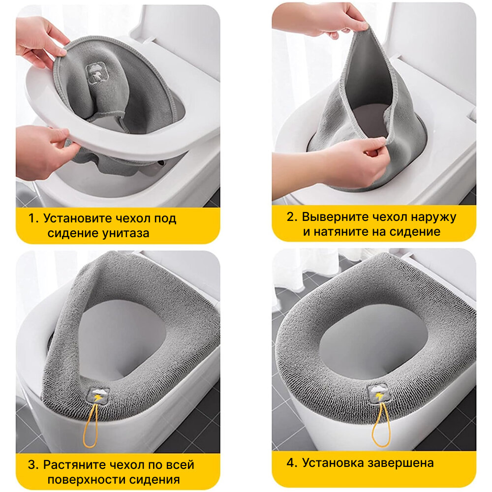 Купить Мягкое сиденье-чехол на стульчак унитаза, серый с петлей