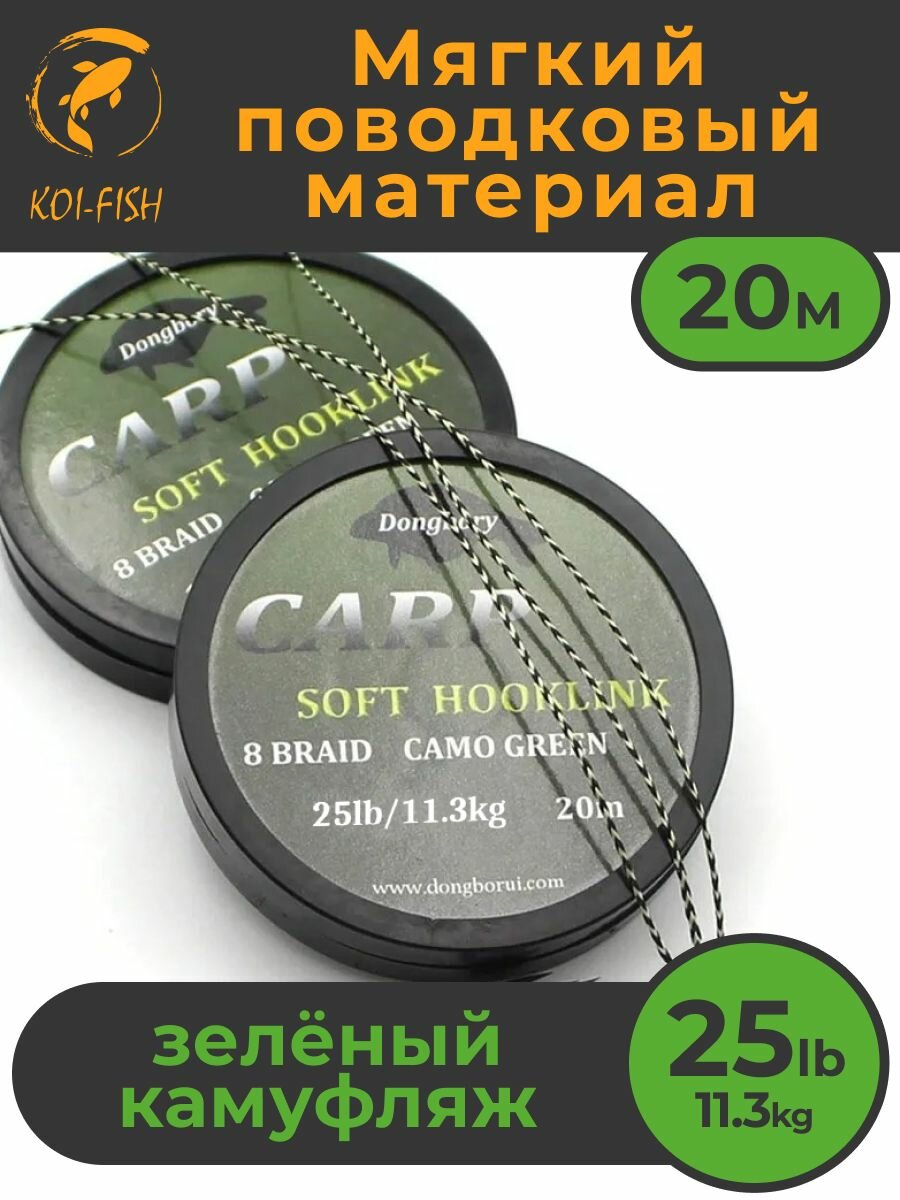 Купить Мягкий поводковый материал 20м 25LB (11,3 кг) Зелёный камуфляж camo green для ловли карпа