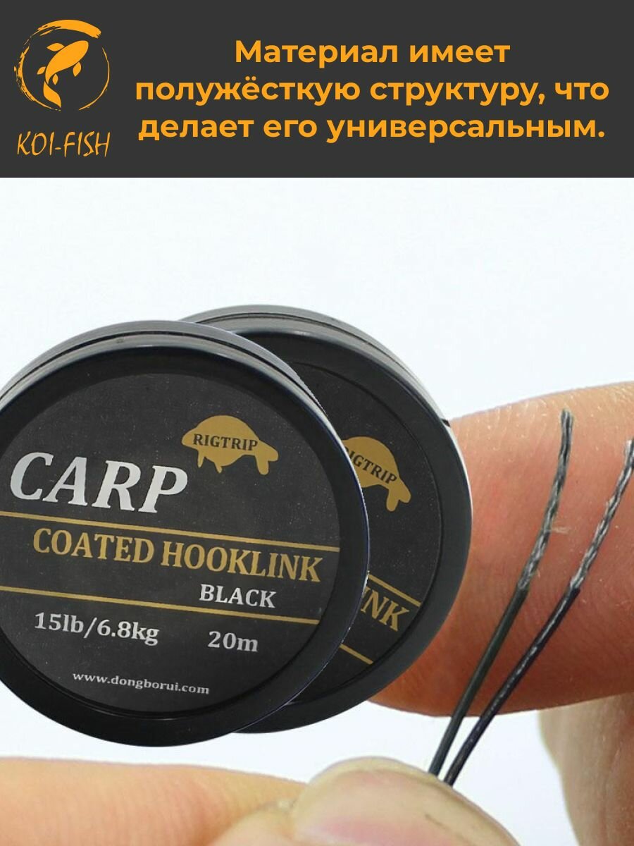 Поводковый материал в оболочке 15LB (6.8кг), 20м чёрный камуфляж для ловли карпа / карповый Поводок в оплётке рыболовный / для рыбалки