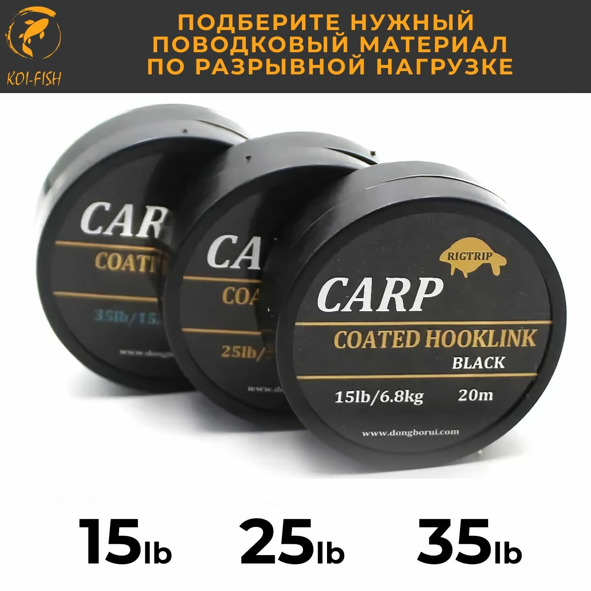 Купить Поводковый материал в оболочке 25LB (11,3 кг), 20м Чёрный Black в оплётке для карповой ловли