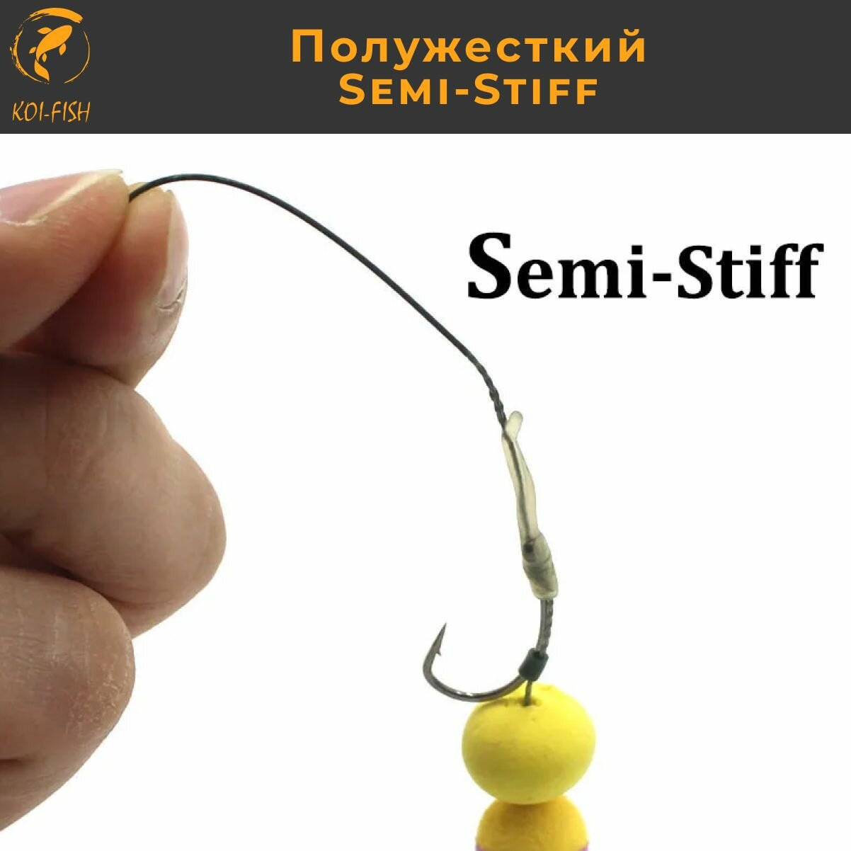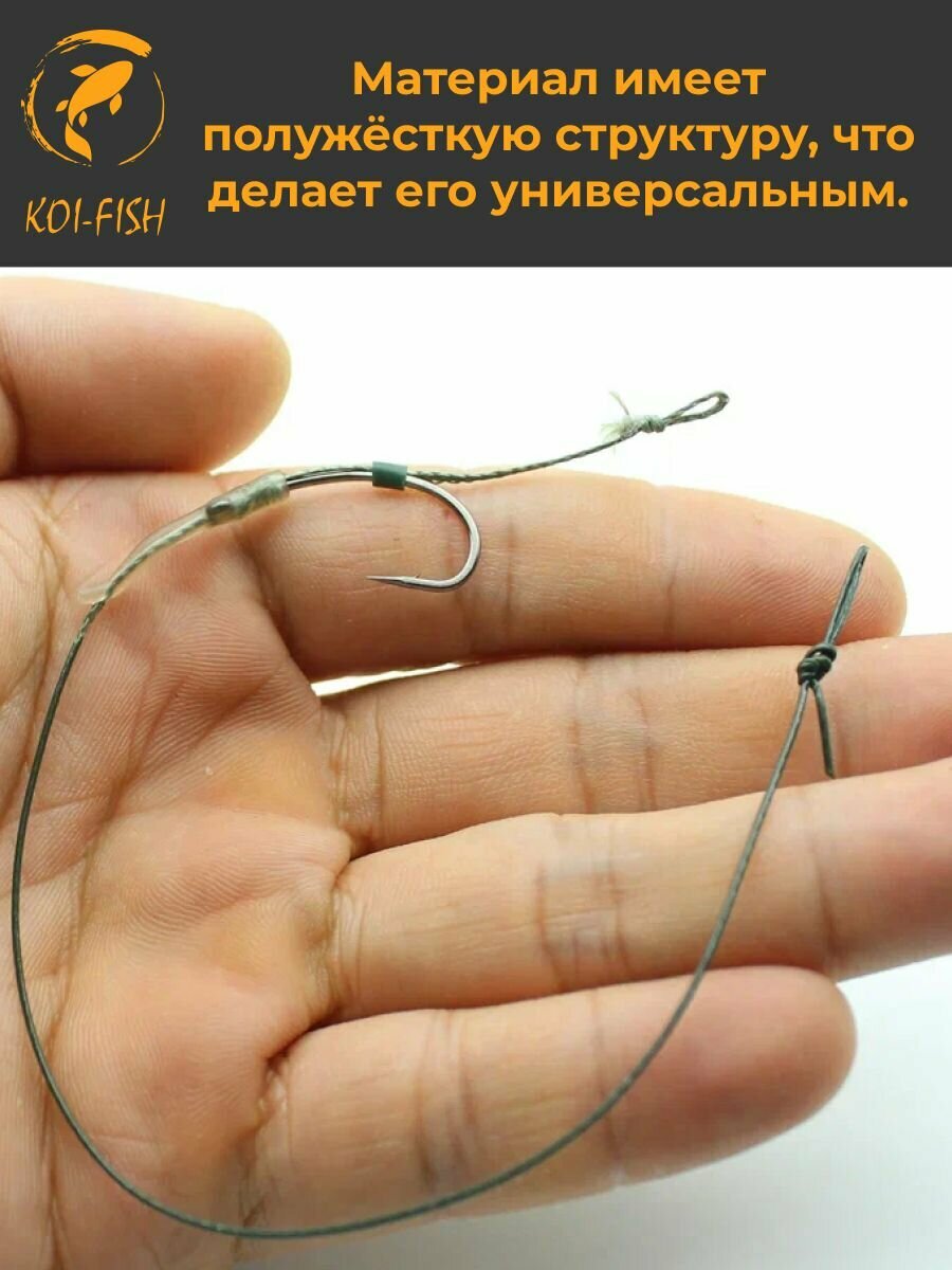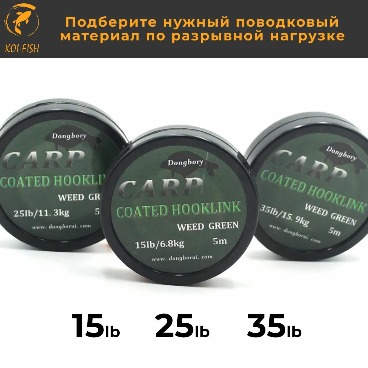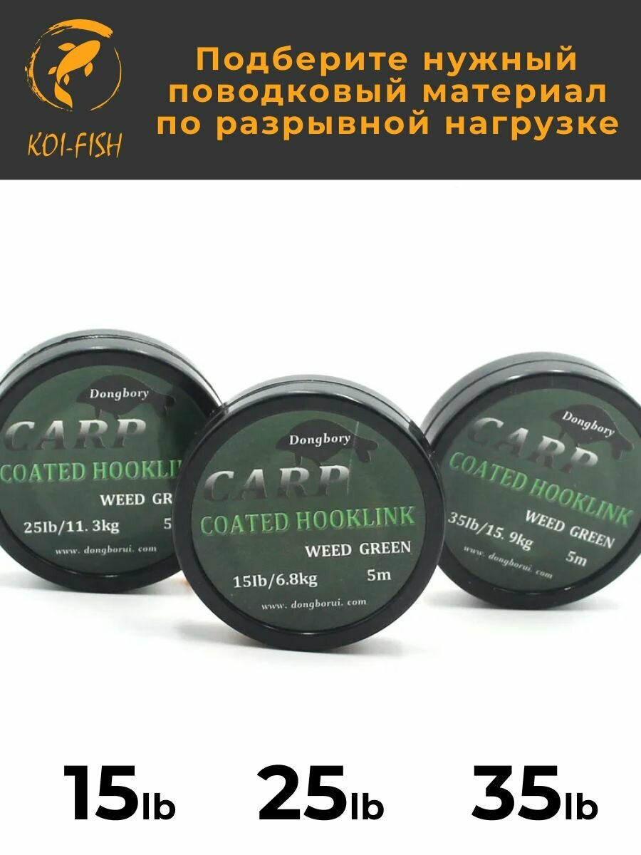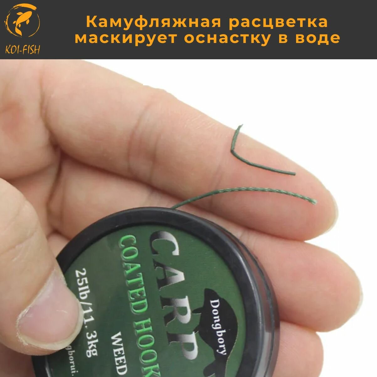 Поводковый материал в оболочке Semi-Stiff (полужёсткий) 15LB (6.8кг), 5м Зелёный камуфляж WEEDY GREEN рыболовный. Поводок в оплётке для ловли карпа