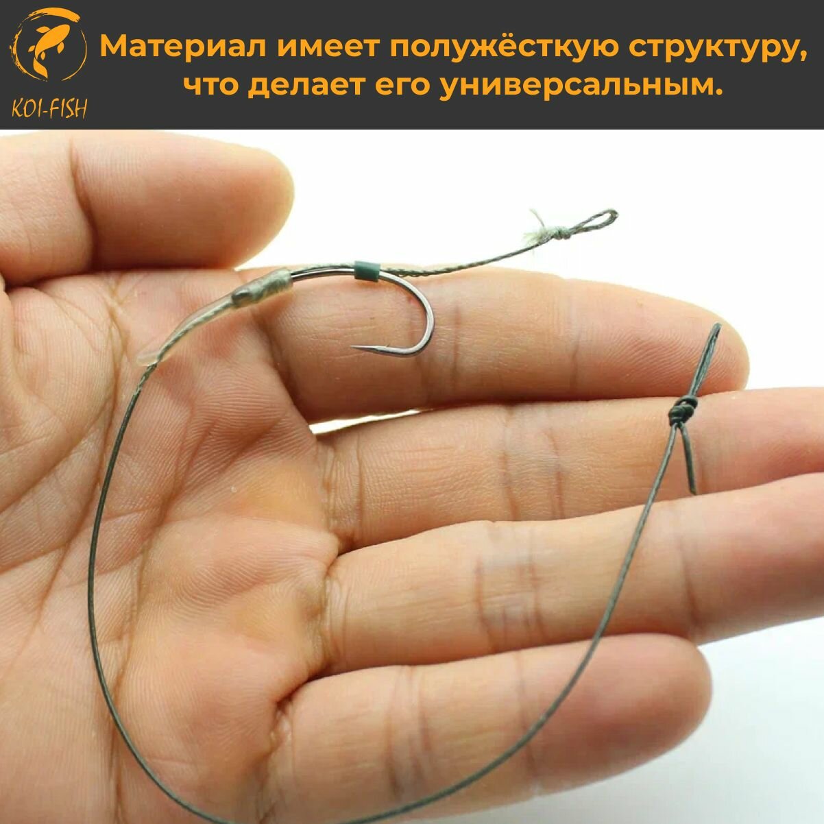 Поводковый материал в оболочке 15LB (6.8кг), 20м чёрный камуфляж для ловли карпа / карповый Поводок в оплётке рыболовный / для рыбалки