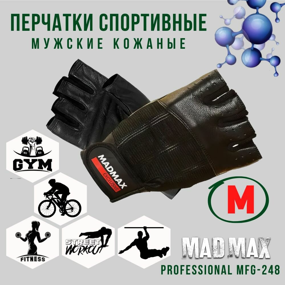 Перчатки MadMax MGF-248 для фитнеса, мужские, натуральная кожа, размер M (арт. 2210)
