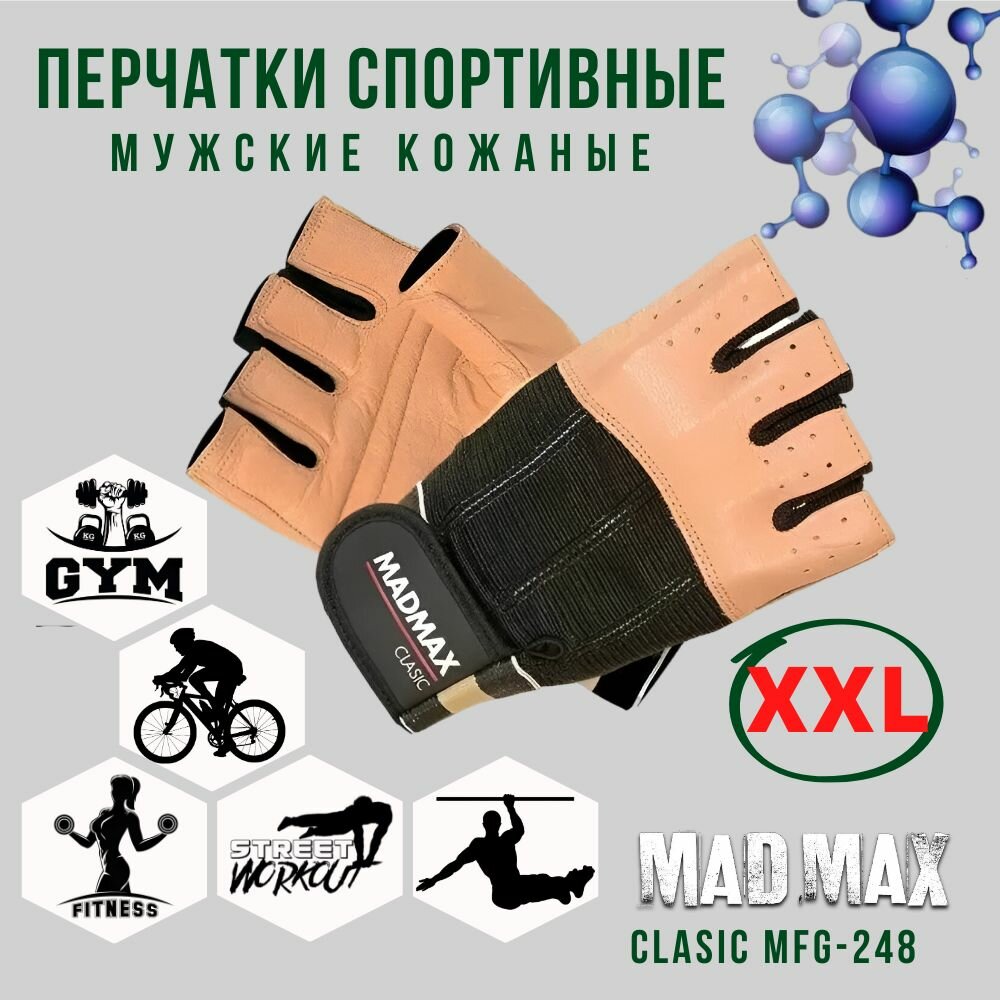 Перчатки MadMax MGF-248 для фитнеса, мужские, натуральная кожа, размер XXL (арт.2241)