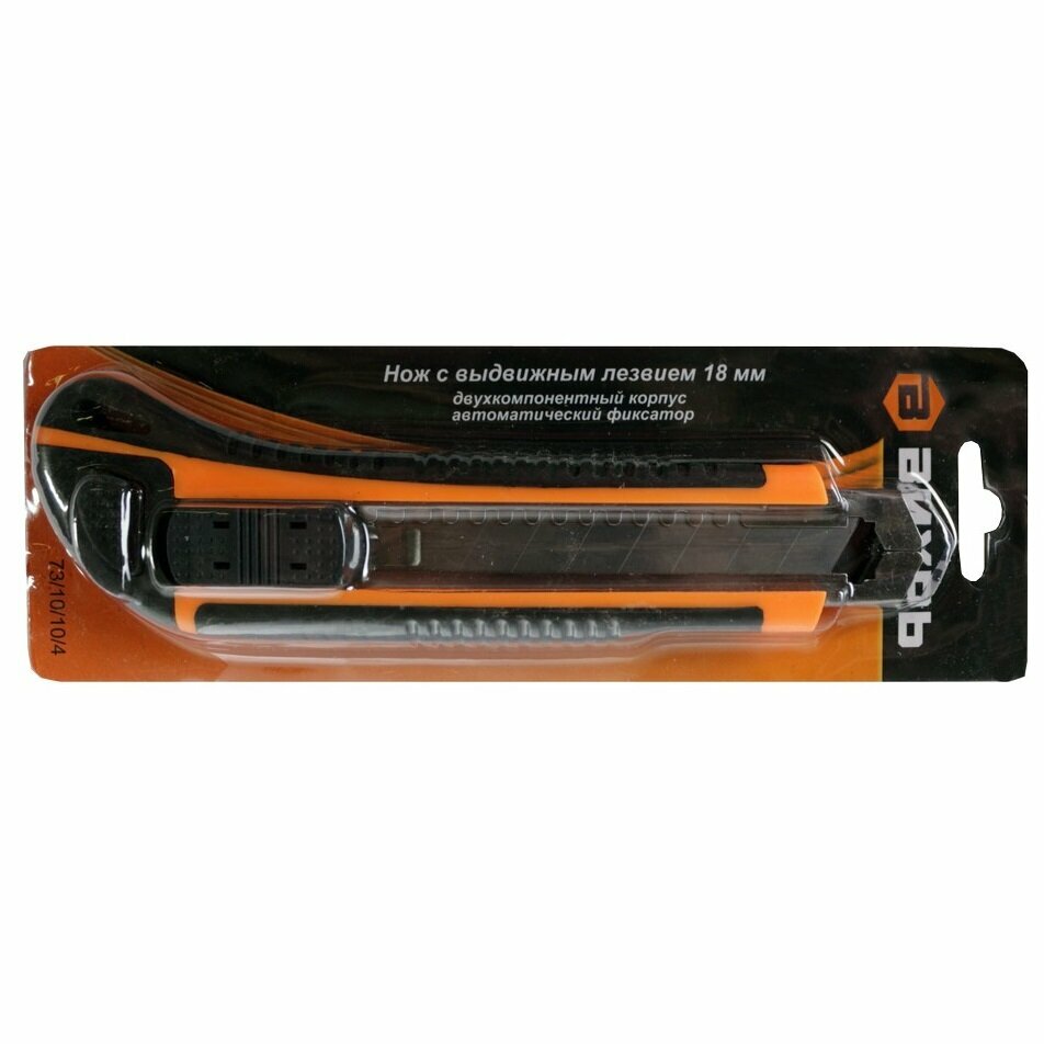 Нож Вихрь с выдвижным лезвием 18 мм, двухкомпонентный корпус, автоматический фиксатор, 73/10/10/4